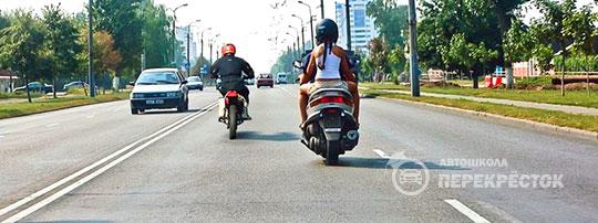 Только водитель мопеда, занимающего левое положение на полосе движения.